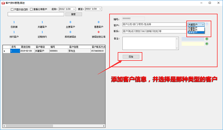 支持生成客户编号顺序,联系方式和备注各项信息的便捷添加方式,累积客源。